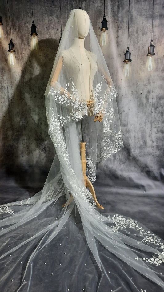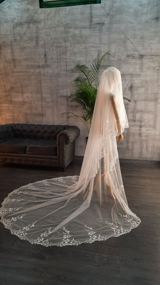 Cathedral veil, Floral Lace Embroidery Veil for Royal Occasions