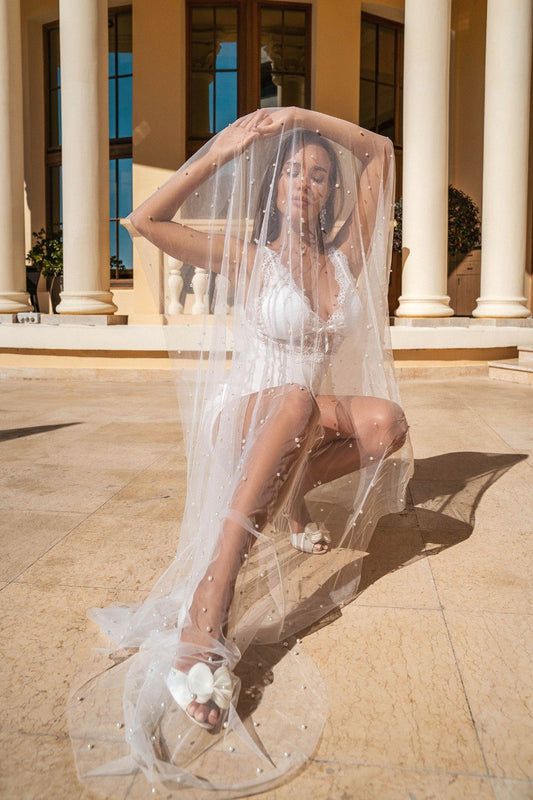 (Copy) Pearl wedding veil Cathedral bridal veil White pearl veil Beaded veil Pearls Accesories Classic ivory veil (Copy)