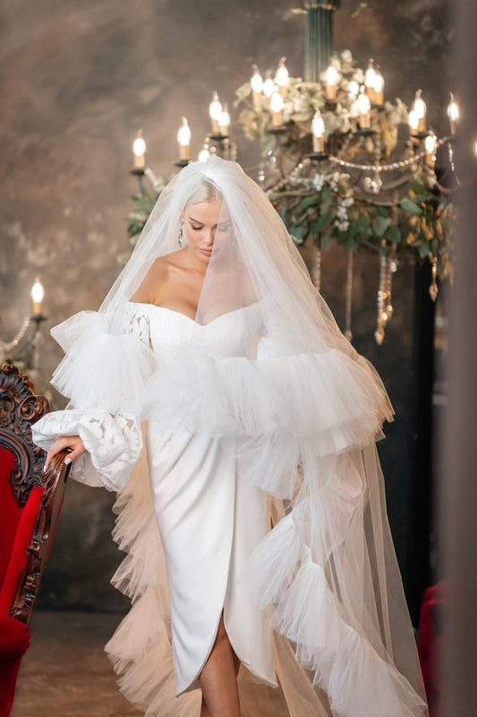 (Copy) Ruffle veil Soft veil Frill tulle veil, modern wedding bridal veil, ruffle, lace, modern bohemian bridal veil