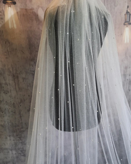 Elegant Sparkly Pearl Bridal Veil - 1 Layer - Perfect for Wedding Day Glam