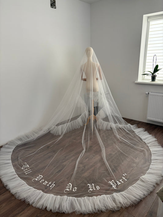 Romantic bridal veil, veil two-tiered Wedding Veil with Ruffles and Personalized Text